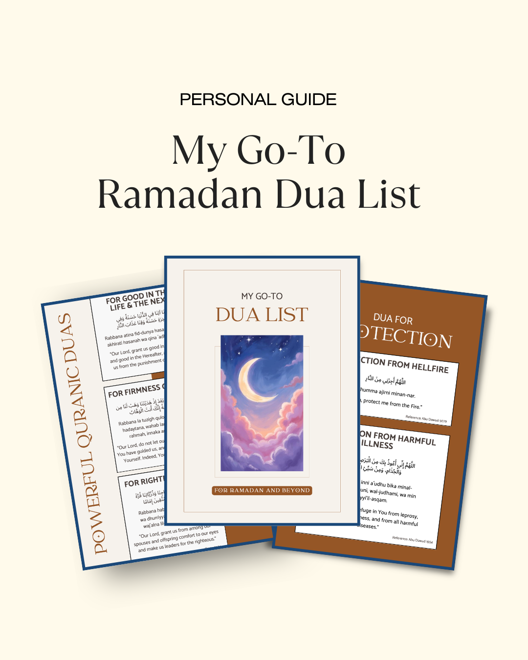 Gifts for Your DeenLittle gifts made with love to inspire your iman, reflection, and everyday worship. Email Address Get The Mercy List We respect your privacy. Your Freebie is on the way to your e-mail address! Email Address Get Ramadan Dua List We respect your privacy. Your Freebie is on the way to your e-mail address! Email Address Get Pre-Ramadan Challenge We respect your privacy. Your Freebie is on the way to your e-mail address! Email Address Get Heart Check-in Prompts We respect your privacy. Your Freebie is on the way to your e-mail address! Freebies every month Sign up with your email address to receive a digitial freebie every month. Email Address Sign Up We respect your privacy. Thank you!